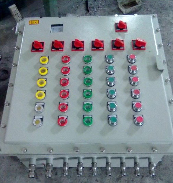 ◆ 防爆控制箱一般均為復合型結(jié)構,由外殼采用增安型結(jié)構,內(nèi)裝元件采用隔爆型元件或增安型的元件,或一個隔爆型主腔內(nèi)裝各種元件,或兩種結(jié)構結(jié)合成一體:外殼采用ZL102鋁合金壓鑄成型,表面高壓靜電噴塑,不銹鋼外露緊固件。內(nèi)裝的元件有按鈕、控制開關、儀表、繼電器、或各種功能模塊,其中按鈕、控制開關、電流表和電壓表均為防爆元件,控制箱內(nèi)部元件可根據(jù)用戶的要求進行排列,可實現(xiàn)多種功能,控制開關有多種功能可供選擇。指示燈也有多種顏色可供選擇,由于該產(chǎn)品變化多端,訂貨時請?zhí)峁┚€路圖。